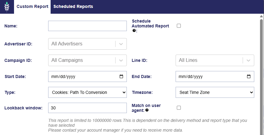 We’ve added a new optional setting called Match on user agent within Path to Conversion reporting types on the Bidder. This checkbox allows you to refine how conversion events are matched to impression events when building IP based conversion reports.When enabled, the system will match conversions not only by IP address but also by the user agent of the device. This creates a more restrictive match and is beneficial for campaigns where impressions and conversions are expected to occur on the same device.
