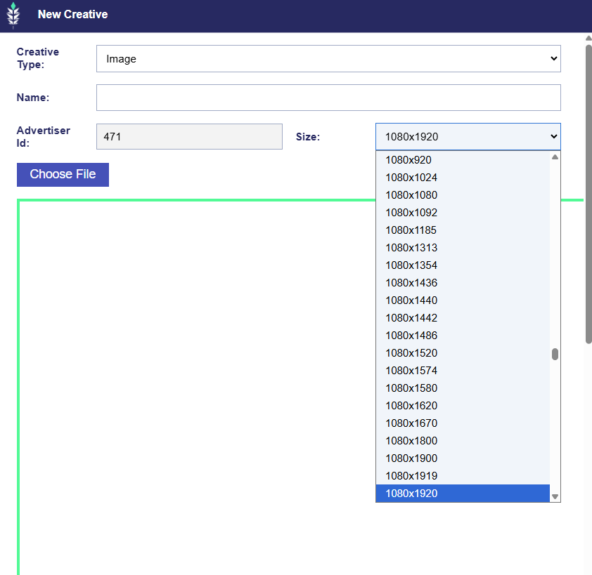 When a user is uploading a new creative to the Bidder and DOOH platforms, the selectable sizes for First Party Videos, First Party Banner, HTML5, and DOOH creatives are now sorted by the width’s ascending order and is searchable. Just type the number to jump to the desired size.